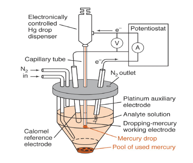 簡單說,極譜法就是一種特殊的伏安法,它使用滴汞電極或其他表面能周期性更新的液體電極(作為陰極)取代傳統的表面不能自我更新的固態(或液態)電極而作為工作電極(極化電極)。